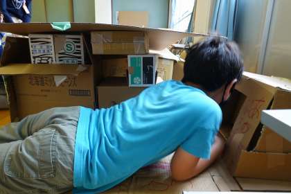 5月21日(金)の図画工作科の学習に,これまで自分たちがつくってきた建物を鑑賞しました。いろいろな建物を見て回った後,どんなところがよかったか聞くと「ドアから入れるようになっているところがよかった!」「ガムテープを使わないで組み立てているところがすごいと思った。」など,友達がつくった作品のよさや工夫をたくさん見つけることができました。