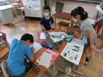 今日は,京都市の様子で,それぞれがさらに調べたい所に分かれて,教科書や地図を見ながら考えました。「ここ,行ったことあるよ。」「高速道路の近くだね。」「雪が積もるとそりができるね。」「今度,家族でいってみたい。」など,話をしながらまとめていました。京都市にはいろんな所があることが分かってきました。最後には調べたことを発表します。楽しみです。
