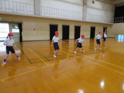 はじめに1年生の時に踊った「パプリカ」を踊りました。みんなしっかり覚えていて楽しく動いていました。そのあとはいろいろな曲をかけ,流れてきた音楽に合わせて即興で振りをつけたり,リズムに合わせて足や手を動かしたりしました。