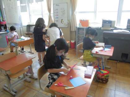 1年生の頃に植えたじゃがいもを使って「じゃがいもパーティー」を開催します。それに向けて今日から動き出しました。ランチョンマット係・司会係・招待状係・畑の先生へのインタビュー係に分かれて,活動しました。それぞれの係で,「じゃがいもパーティー」をみんなでなかよく楽しくできるように計画しています。みんな頑張ろうね。
