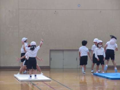 お友だちがマットで練習しているときは,お友だちの様子を見て静かに待つことができていて,とっても素晴らしかったです(*'▽')