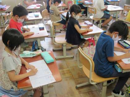 そして,カタカナの授業。体育で精一杯体を動かしたので,疲れているかな・・・と思っていましたが,とっても良い姿勢でカタカナを書いていました!足をしっかり地につけて,背筋をぴんと伸ばした姿勢で書くと,きれいなカタカナが書けそうですね♪