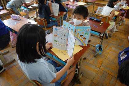 外国語活動で,1週間の予定を考え「曜日クイズ」をしました。月曜日かな?火曜日かな?と考えながら,「It's Monday?」などと一生懸命答える姿がすてきでした。