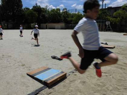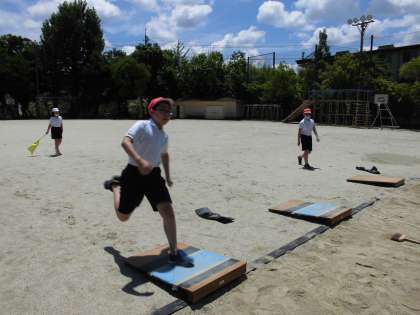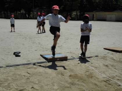 助走や踏切,空中動作を工夫して記録を伸ばそうと取り組んいます。