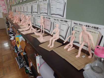 一日経つと,紙粘土も結構乾いていました。
