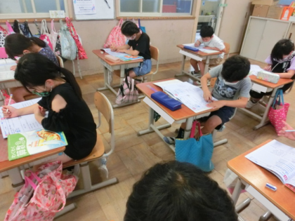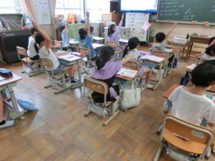 今日は10倍になったときにはどんな計算をするかを考えました。元の数に0を1つつけるだけだというやり方がわかると,みんな「簡単やん!」,「できた!」とどんどん問題を解いていました。