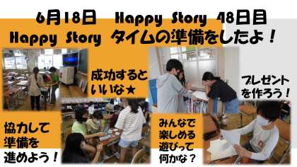 今週の締めくくりの6時間目は,第3回HappyStoryタイムの準備でした。それぞれの役割に分かれてみんなで楽しむために精一杯工夫をしていました。