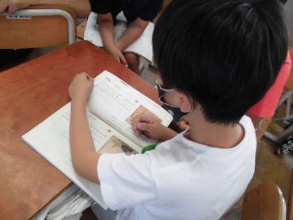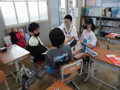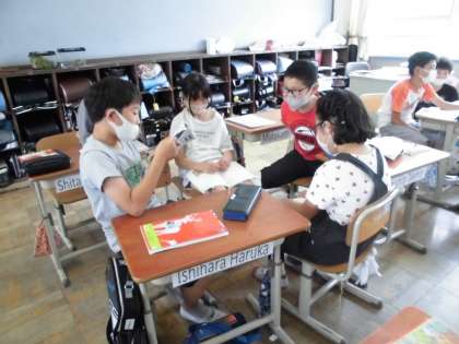 「竹取物語」「平家物語」「徒然草」「奥の細道」の古典作品に触れる学習をしています。言葉の響きやリズムのよさを感じれるよう声を出してみんなで交流しました。