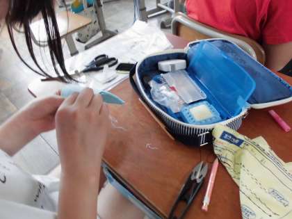 学習した裁縫セットの使い方を生かして,小物づくりにチャレンジしました。素敵な作品ができあがり,「お家の人にプレゼントする」と言っている子もいました。