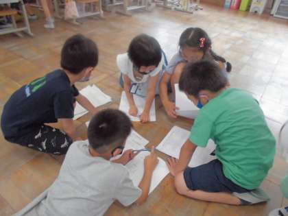 1学期のおわりに,みんななかよし会をするために,司会グループで事前の打ち合わせをしました。