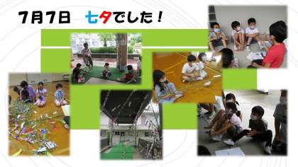 朝,子どもたちに「今日は何の日でしょう。」と尋ねると「たなばたー!」と大きな声で答えてくれました。織姫と彦星が1年に1回だけ会える日ということも1年生みんな知っていて,驚きました。詳しいですね!