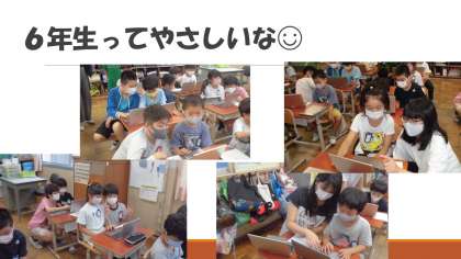 1学期をふりかえるアンケートをロイロノートを活用して答えました。6年生に優しく教えてもらいながら,写真を撮ったり,動画を撮ったりもしました。