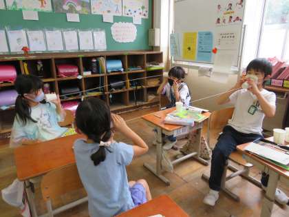 音が伝わる時のものの震え方を調べました。まず,糸がたるまないようにないと音が伝わらないことが分かりました。そして,音を出している時や出さなかったりした時の,スパンコールの様子や糸を触った時の様子を調べました。スパンコールはほんの少し震えていることが分かりました。しかし,分からないグループもありました。しかし,糸を触ってみると震えていることが分かったようです。音が伝わる時,ものが震えていることが分かりました。次は,4人糸電話を作ってみるつもりです。成功するかな?