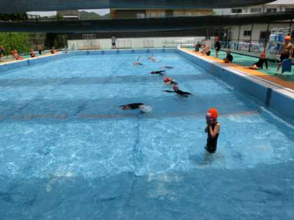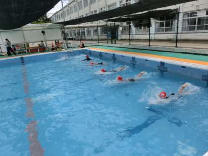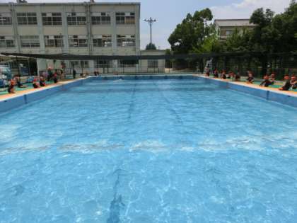 3年生は,雨で流れることなくプールに入れています。今日は,けのびからバタ足。そして,クロールの息継ぎの練習をして,クロールにもチャレンジしています。少しずつ泳げる距離が伸びてきました。最後に,検定もしました。みんな楽しんで水泳しています。