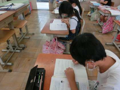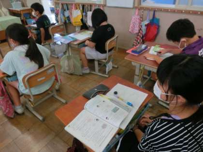 「同じ数ずつ分けた時にあまりが出るわり算」の学習をしました。今までは,数図ブロックを使ったり,半具体物を使ったりして考えていましたが,問題文を読んだだけで求められるようになってきました。みんなは,計算の仕方が分かってきて,「九九」を使って求められるようになりました。3年生のみんな頑張っています。