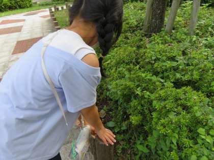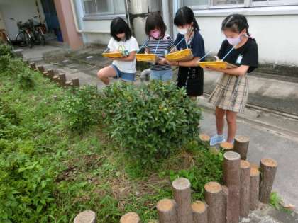 今日の理科では外に出て,「どんな生き物がどこでなにをしているのか」を考えながら生き物を観察しました。