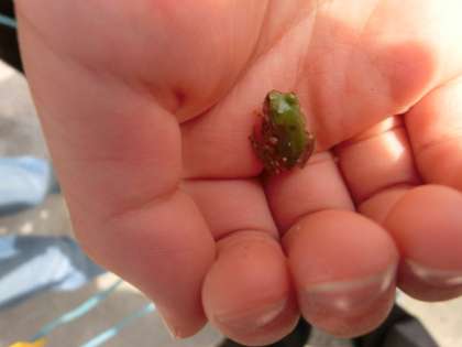 秋になってきてセミの鳴き声が聞こえなくなってきましたね。今日は探してみるとショウリョウバッタ,アマガエル,クモ,ミミズ,ダンゴムシなどが見つかりました。「草のところにいるから,えさである草を食べている。」,「見つかりにくいところにいるんじゃないかな。」といろいろな考えをつぶやきながら観察カードに書いていました。