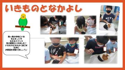 陵ヶ岡小学校にはモルモットの他にもたくさんのいきものが過ごしています。”いきものとなかよし”になれるように,飼育委員会の5,6年生を頼りにしながらお世話を頑張っていきましょう♪