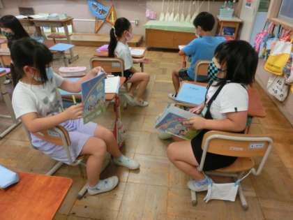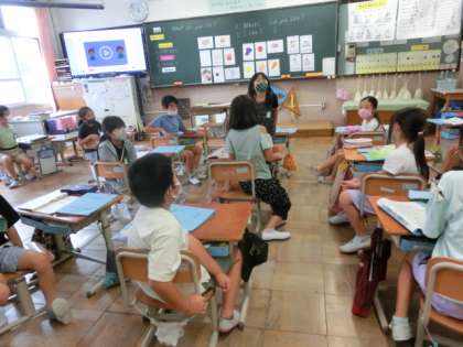 次の時間には今日交流していない友だちとも質問し合いたいと思います。次回は色,食べ物以外にもう1つ自分でカテゴリーを決めて友だちに質問をします。どんなことを聞こうかな?とみんなワクワクしていました,楽しみですね!