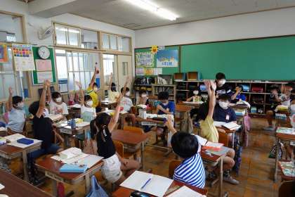 国語科「いろいろな意味をもつ言葉」の学習で,言葉の意味を調べて問題をつくりました。「あがる」という1つの言葉にも,「上がる」「挙がる」「揚がる」など,いろいろな意味や使い方があることを確認しながら問題をつくることができました。