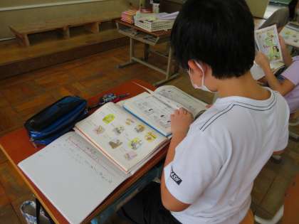 ことわざは,生きていくための知恵や教えを短い言葉で表したものです。みんな「犬も歩けば棒に当たる」,「猫の手も借りたい」,「覆水盆に返らず」など聞いたことがあることわざを口々に言っていました。そのあとことわざ辞典などを使い,意味を調べてみると「こんな意味やったんや。」と驚いている姿も見られました。