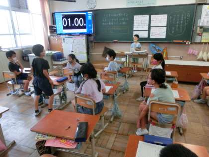 真剣に話している時に,途中でさえぎられるとがっかりしたことあるよね。また,話をしていると,途中で本筋と違う内容で話が進められると「最後まで聞いてよ。」となるよね。という経験から,上手な話の聞き方ってどんな聞き方かを考えました。1,話す人に体を向けて 2,顔を見て・・・と5つの基本レベルに,最後に質問や感想を言う。という達人レベルの8まで,めあてを立てました。これから毎朝順番に日直が1分間スピーチをしていきます。それを聞いて「聞き方達人」を目指していきたいと思います。みんな頑張っていきましょう。