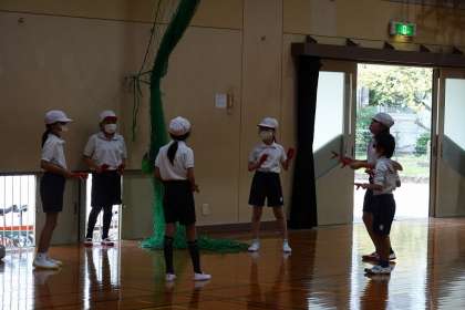 体育科「鳴子」の学習がはじまりました。初めて鳴子を触った子もいたようで,「すごい。」「カチャカチャ音がなるね。」など,嬉しそうに話す姿が見られました。