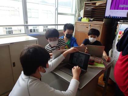 ミライシードやタイピング練習,ロイロノートなど,新しいものは触っているだけでも楽しいのでしょう。友達と話しながらどんどん進めています。
