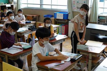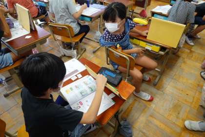 4年2組でも,友達と尋ね合いながら文房具セットを作りました。友達はどんな文房具セットをつくったのか予想し「Do you have a pen?」「Do you have a pencil?」と,どんどん質問していました。
