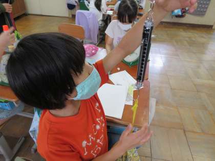 今日の算数では重さに合わせてはかりを選んで,身の回りのものの重さを量りました。