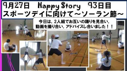 そんなGIGA端末を体育のソーラン節の練習でも上手く活用しています。だいぶ,振り付けも覚えることができたので,今日は自分の踊っている様子をペアで撮影し合いました。そして,自分の踊りを見て改善点を考えたり,アドバイスし合ったりしました。一回一回の練習で確実にレベルアップしていますよ〜〜。