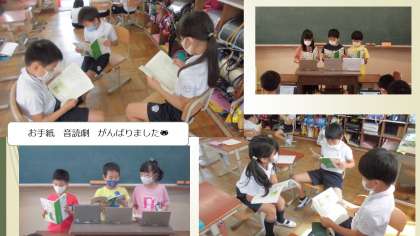 国語でお手紙の音読劇をしました。かえるくん,がまくんの気持ちを考えて読むことができました。タブレットを活用して,自分の音読を何度も振り返ることができたので,今まで以上に振り返りながら学習に取り組むことができました。