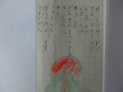 昨日の授業では「秋といえば?」とみんなで秋のものをたくさん考えました。「どんぐり,まつぼっくり,夕日,とんぼ,ハロウィン,運動会…」といろいろな意見が出ました。今日はその題材を使って詩や文章を作りました。中には俳句や短歌を作っている人もいて学習してきたことを活かしていました。