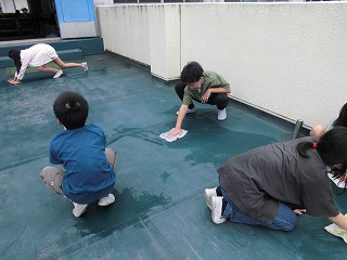 わたり廊下をきれいにしようと,自主的に雑巾を使って一生懸命掃除をする姿が見られました。掃除用具を使った後の片付けもバッチリで,自分たちで考えて行動することができています。