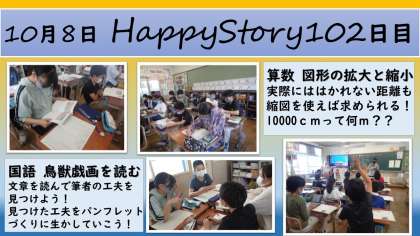 国語は鳥獣戯画の筆者が施した工夫を探しました。たくさんの工夫が見つかりましたね。これらを生かして分かりやすいパンフレットを作っていきましょう!!