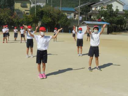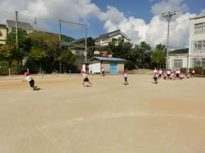 80m走はみんな勢いよくスタートしていました。しばらく雨が降っていないのでスタート位置の砂で滑ってこけてしまう子もいましたが,本番同様すぐに立ち上がって走っていて,とてもかっこよかったです。ダンスは昨日よりも大きく踊るグループが多く,迫力が出ていました。