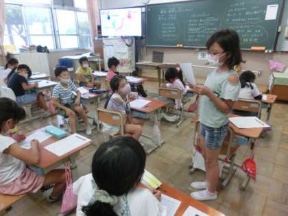 はじめに「三年坂」というお話これまでに習った「三年とうげ」のお話を比べて,似ているところや違うところを考えていました。違う国のお話ですが話の内容が似ているので,昔から国同士のつながりがあったことに気づいる児童がたくさんいました。