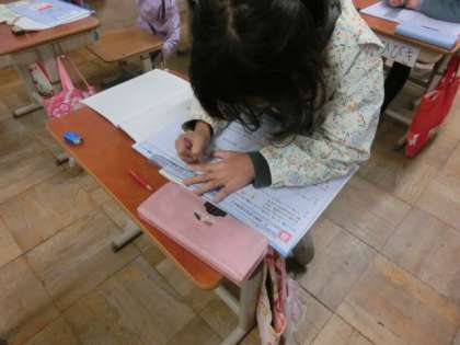 「何倍になるかを考えて」の学習では,問題を読んだら図をかいて考えてきました。子ども達は,何度も関係図をかくうちに上手にかけるようになってきました。今日は,計算ドリルを使って確かめました。「何倍の何倍は,何倍になるのか。」という考え方もできるようになりました。