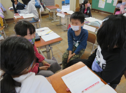 第五場面は四行しかないですが,第四場面までの戦争が起きていた時代から何十年後の様子について書かれています。今日は「何のために第五場面があるのか?」について話し合いました。「第五場面があることで平和な様子や幸せな様子が伝わる」,「ちいちゃんがなくなった第四場面で終わると悲しい。」などとたくさんの意見が出ました。