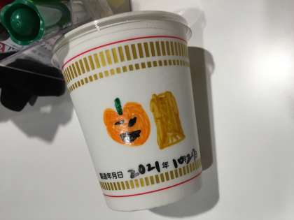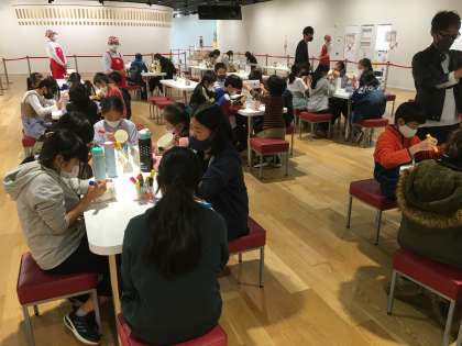 ミュージアムを見学した後は,自分だけのオリジナルカップヌードルの製作です。みんなカップに絵をかきました。少し時間が押していて10分ほどしかなかったのですが,とても集中してかいていました。