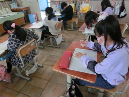 今日の国語ではこれまで学習してきた「ちいちゃんのかげおくり」の感想を作文用紙に書きました。