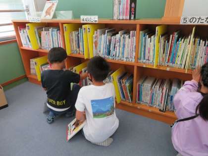 昨日どんな本がいいのかなと話し合うと,わくわくする本,続きが気になる本,絵がかわいい本などたくさんの意見が出ました。今日はその意見をもとに自分がこれがいいという1冊を決めました。みんな絵を確認したり,少し読んだりしてとても真剣に選んでいました。