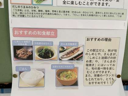 6年生が,家庭科で学習した「主食・主菜・副菜」の内容と,食の指導で学習した「和食の魅力」の内容を踏まえて,和食のパンフレットを作ってくれました。