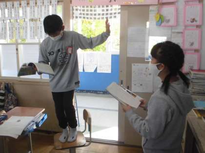 役になりきり,動作をつけながら練習に取り組んでいました。