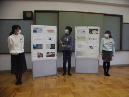 総合的な学習の時間の学習でポスターセッションの練習をしています。