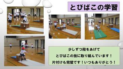 「縦開脚とび」や「横開脚とび」ではとび箱が上手なお友だちの姿から,跳ぶときのポイントを押さえていきました。