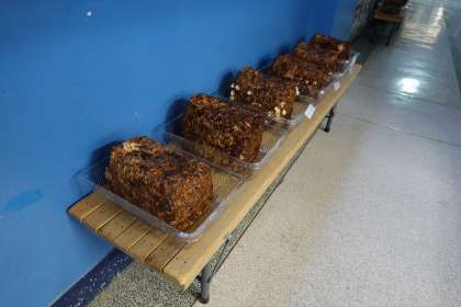 昨日,4年1組も2組も,みんなの椎茸の収穫が1回は終了しました。収穫の後は,少しお休み期間があると聞いていたので,これからしばらく収穫できませんが,また出てきてくれることを願いながら見守りたいと思います。