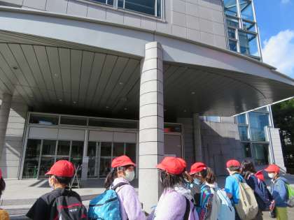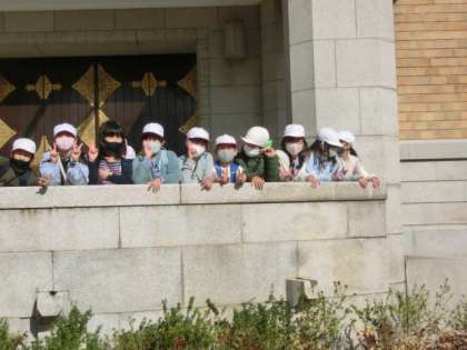 来たことがない子も多く「ええーおっきいなあ。」,「初めて来たな。」と見ていました。今日は中に入ってゆっくり見るということはできなかったので,またおうちの方と行ってほしいなと思います。