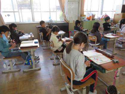 前回体育館でやった時のことを思い出し,歌は歌詞が1番と2番混ざってしまうので繰り返し歌い,歌詞を覚えて大きな声で歌えるように頑張りました。リコーダーはできるだけ前を向いて指揮に合わせて吹くことを意識しました。