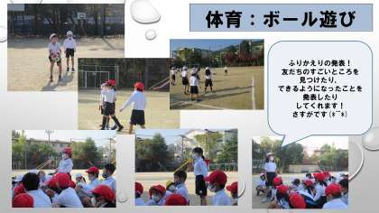ボールの投げ方を工夫する子や,ボールの取り方を考える子・・・ボール遊びをはじめたころよりもできるようになった子が増えたように思います。